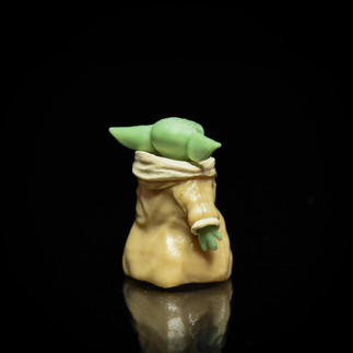 The included Grogu is somewhere between a figure and an accessory. He stands about an inch tall and has a fixed body with the arms sculpted as part of the torso and not articulated. On this release, the left arm is outstretched in a 'force' pose - the same body as was used on the Din Djarin Deluxe release from 2020. The body is cast in a sandy brown base plastic with a lighter tone painted onto the collar and cuffs.
