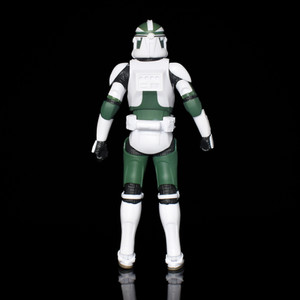 Hasbro intended to include a removable helmet for all Clone ‘characters’ going forward, a move supported by the newer body featuring a hollow helmet and this was certainly applied on the first Clones of the Republic set and the 187th Clone. It appears that was also intended at some point for Gree and went as far as a flesh-tone cast head that is visible under the helmet. Sadly, a decision since has been made to fix the helmet in place so we have no option of displaying Gree with his helmet removed and with that unique haircut he is sporting in the comic book artwork. The helmet is standard and has no added parts or designs as seen on other Commanders. Like the armour it's cast in white and has green painted markings with the visor and vents painted in black with some silver detail in selected areas.