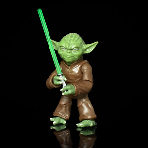 There are then two versions of Yoda’s lightsaber. One a hilt and one a hilt with a lit lightsaber blade. The size of the saber has obviously rendered a removable blade difficult so this option - used on the Vintage Collection 3.75 figures - is a good compromise. The saber can fit into either hand, and there is even sufficient articulation in the tiny body for a two-handed grip as seen when fighting Count Dooku or Darth Sidious.