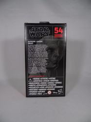 The red character text gives his full name as Supreme Leader Snoke, and this is repeated on the gloss red side spine under the large black number 54.
