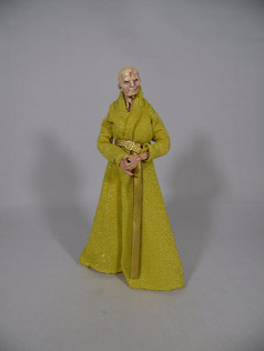 The first thing that is striking about Snoke is the sculpt. The head is particularly impressive with its multitude of scars and defects - and yet with piercing eyes from beneath. The paint job further enhances the sculpt with a pink fleshy tone used n the damaged parts and blended in with the pale flesh. This same skin tone is used on the hands to give them a haggard look.