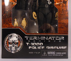 NECA continue the boxed packaging with Genisys, and the box design is particularly striking vs the more muted darker tones that NECA have preferred on other licences. The box base colour is predominantly a striking red within which is a background scene including T800 Endoskeletons and on the rear a hovering Hunter Killer. The window is cut out at an angular shape, and the bottom of the box moves to a gun metal colouring emblazoned by a T800 Endoskeleton skull logo. The character's full name in this bottom panel is T-1000 Police Disguise, and a top this sits the Genisys movie logo. Both box sides repeat the Endoskeleton head logo, with the character name printed at the base of each side spine and the Genisys movie logo at the very top. On the reverse you will find a black box to the right hand side, in which is a breakdown of the T-1000 under the headers Description, Strengths, Weaknesses and Interesting Facts, the last one feeling a bit out of place. Under this biography box are torso images of the T-800 Guardian, which was released at the same time, and the T-800 2017 Guardian ("Pops") who is marked as Coming Soon. At the very base of the rear are three images of the T-1000 figure, each showing a different configuration of parts. Upon opening the box there is the usual inner perspex tray and a dark grey cardboard back insert.