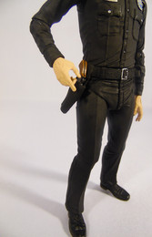 The Uniform is painted a flat black, but there is definition in finish between uniform and the shoes which are a glossier finish and have a defined brown sole. The detail, such as it is, is picked up in silver paint - buttons, belt buckle and the officer ID. The Police Badge has a silver base, with blue detail on top. All the silver damage is just that, one tone solid silver and again the head one looks a lot better as there is more depth into the head to give some shadow.