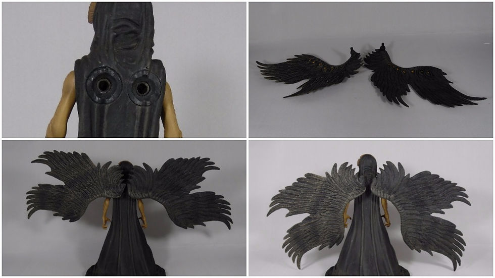 While the figure paint work hasn't wowed much, the wings do raise the bar with the individual eyes down each wing picked out in gold with a black pupil.