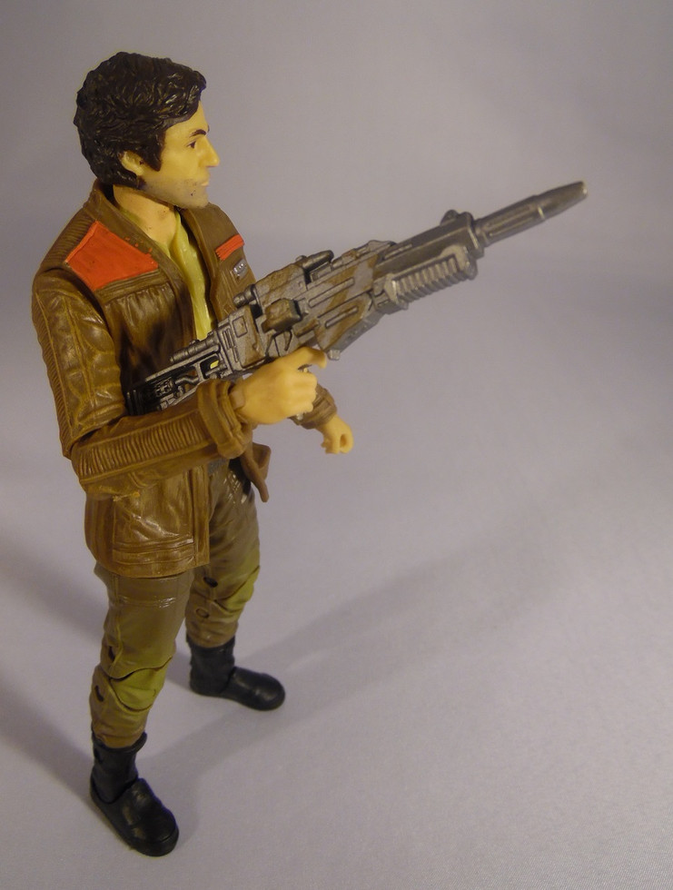The trousers I think may be the same as those coming with the wave 3 Resistance Trooper. These are painted really well and we do get some weathering and paint effects to dirty up Poe a little. The figure comes with another new type of weapon, a larger rifle of similar design to that packed with wave 1 Finn. This is cast in a silver gun metal plastic and has some bronze dry brush to weather it up. Like the other resistance weapons we have seen so far, they do look overly clunky and large - again probably more to do with the film than the sculpt.