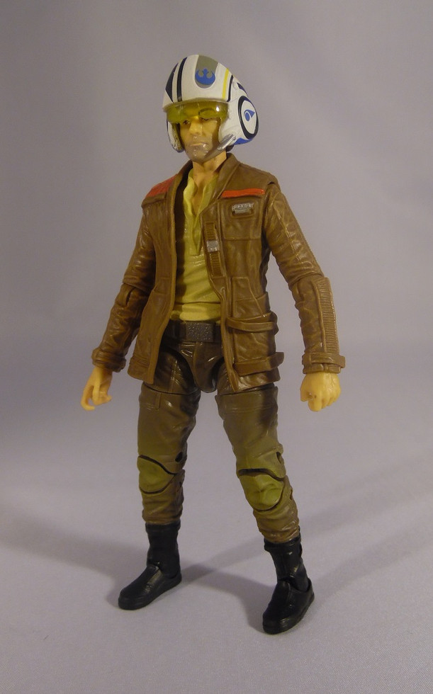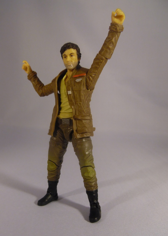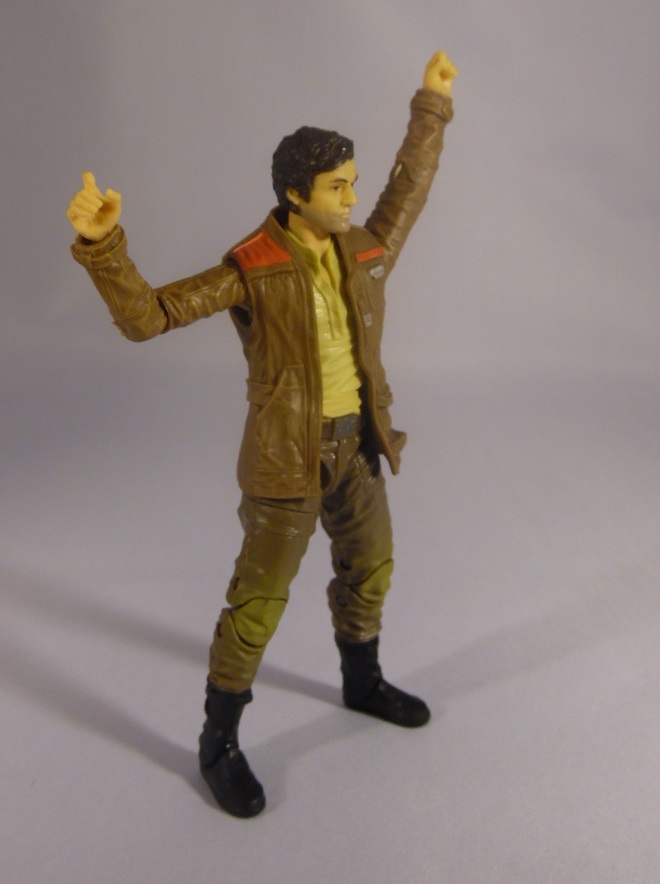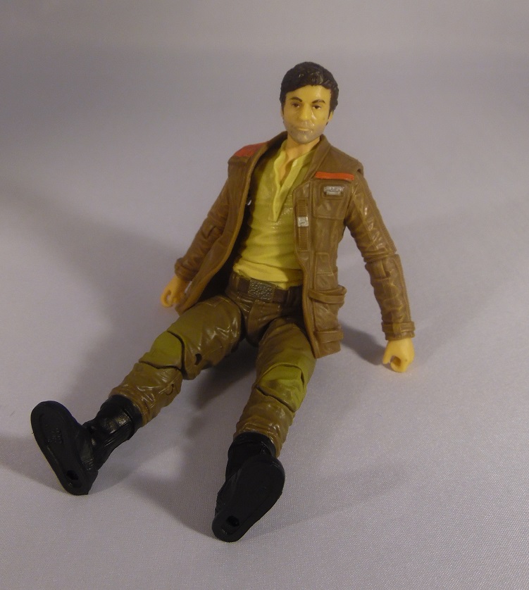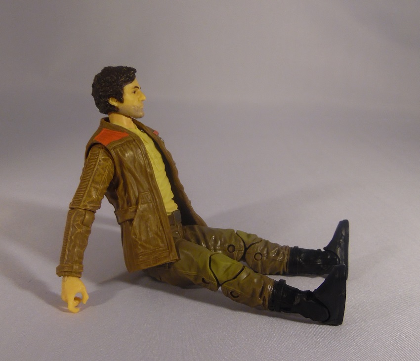 Articulation is pretty standard on Poe with ball jointed head, articulated shoulders, swivel and jointed elbows and pegged wrists. There is a torso joint nicely hidden beneath the jacket and the hips do allow for Poe to sit down if needed if they ever decide to give him a 1/12 scale X-wing. Knees are double jointed and the figure finishes with ankle rockers and unlike his box companion he stands really well.