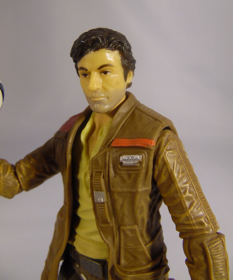 The jacket is a re-use of the one that came on wave 1 Finn. Obviously this is either the same jacket (will have to wait till December) or a uniform jacket for the Resistance. The insignia and red panel are crisp and painted neatly and I prefer the wash and slightly duller paint job on this coat vs the Finn version.