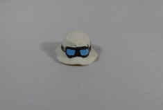 The hat is cast in white soft rubber and has sculpted goggles over the top. These are painted black with bright blue lenses. The hat sits over Luke's head pretty well, but still looks a touch oversized.