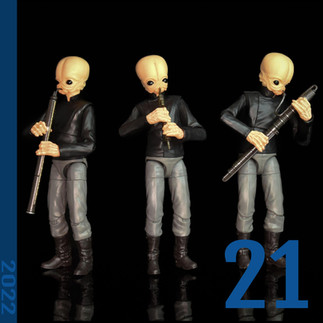 Another character translated from animation into the Black Series, and our number 19 pick, is Grand Admiral Thrawn. While Thrawn had seen a release in 2016, it was his 2021 Archive release that brought the character to life with the updated face decor enhanced by the photo-real printing process. My pick at number 20 is another figure from Jabbas Palace with the 2022 release of Bib Fortuna, the Twilek majordomo. We stay on Tatooine for our 21st pick, the 2022 release of the Cantina Band's Figrin D'an. This release, alongside the companion piece of Naan Cheel allowed collectors to - if they wished - buy multiples to recreate the Model Nodes.