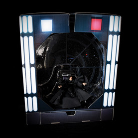 The two side panels will then fold outward to create a larger cardboard display piece. These panels now reveal further artwork and imagery from the Throne Room on the 2nd Deathstar. The practicality of these for a more permanent display is something that will need some thought as they do not sit on the ground and therefore all the weight of any other figures added into the space will sit on the cardboard hinges.