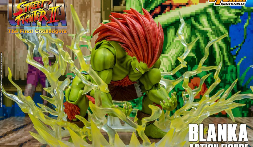Storm Collectibles has released details of a new Ultra Street Fighter II: The Final Challengers Blanka figure. The new 6-inch scale Blanka will feature four head options, additional hands, and an Electic Thunder effects piece. He is listed for release in Q3 (July-September) 2024 with the figure listed as a Big Bad Toy Store exclusive for the US.