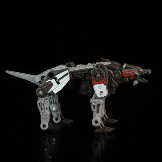Ravage is articulated at the neck and tail, and at three points on each leg for a good variety of poses including general stances and more dynamic 'stalking' or 'howling' positions. We even get a joint at the jaw so the mouth can be open or closed.