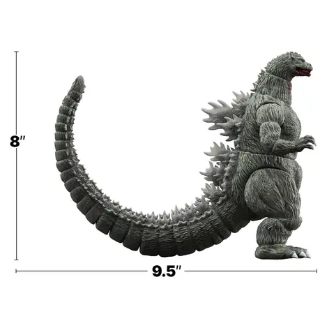 HHHRROAR! The King of the Monsters is on a rampage and heading for your collection as a Toho ULTIMATES! Figure. Also, he’s thirsty for blood. This 7” greyscale collectible, a recolor of the SDCC 2023 exclusive Godzilla ’89, is inspired by Dark Horse Comics’ Godzilla, King of the Monsters #1 (June 1995) with cover art by Arthur Adams. Godzilla’s just been hit with a poison dart and is ravaging the West Coast of North America. Teams across the globe are trying and failing to subdue the monster, but you can do your part by keeping it safe in your collection. This figure has 19 points of articulation and comes with 2 interchangeable heads and multiple interchangeable claws. Intricate sculpting and paint details bring this formidable creature to life. The Toho ULTIMATES! Godzilla ’89 (Thirsty for Blood) figure comes in window-box packaging designed to make it look like he’s just crashed through the box, leaving splatters of blood red against a greyscale backdrop. This figure is a must-have for any Godzilla fan, craving kaiju chaos.